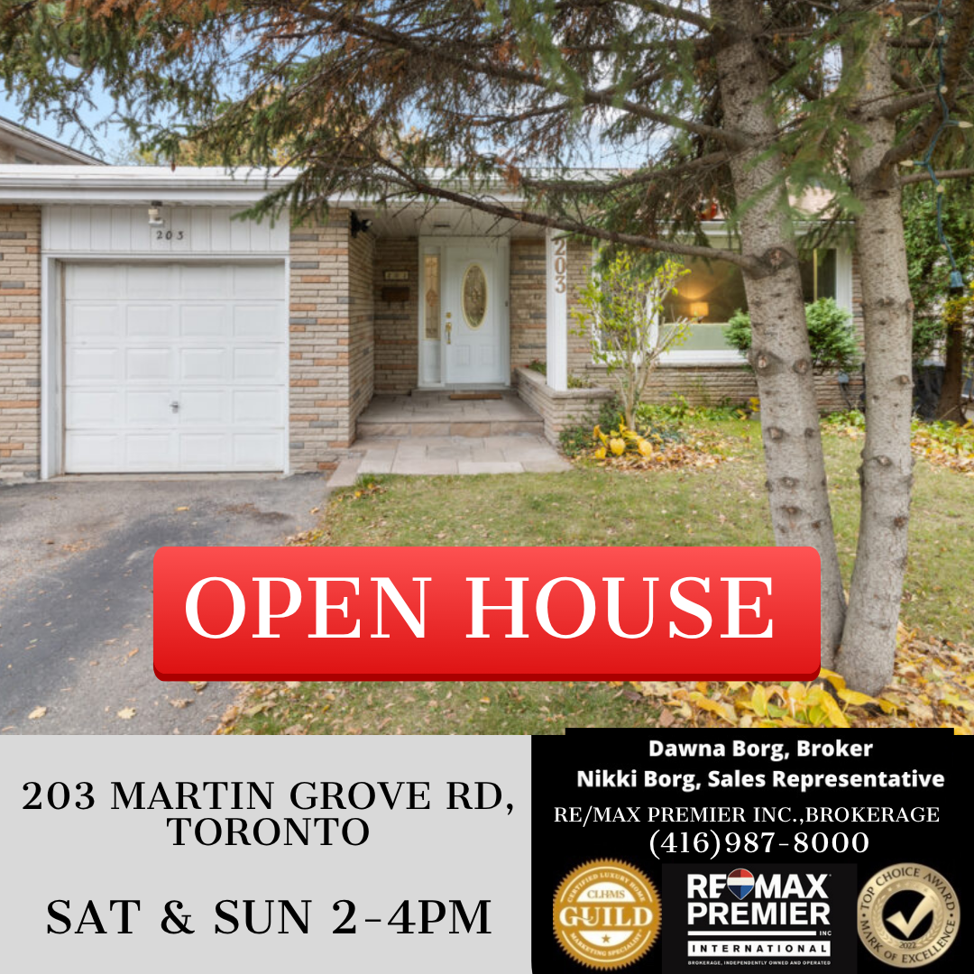 Open House 203 Martin Grove Rd, Toronto Saturday and Sunday November 8/9 from 2-4pm