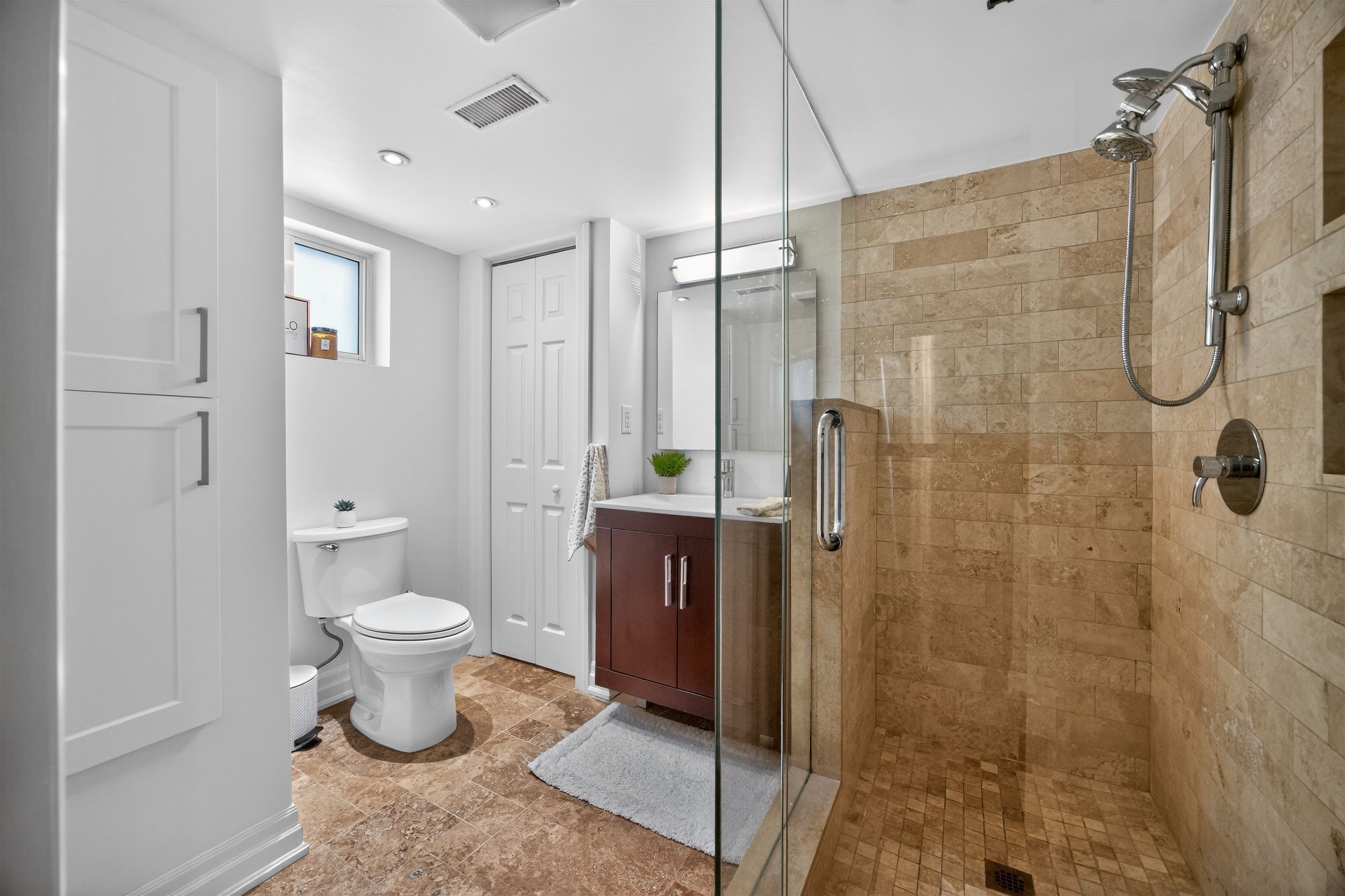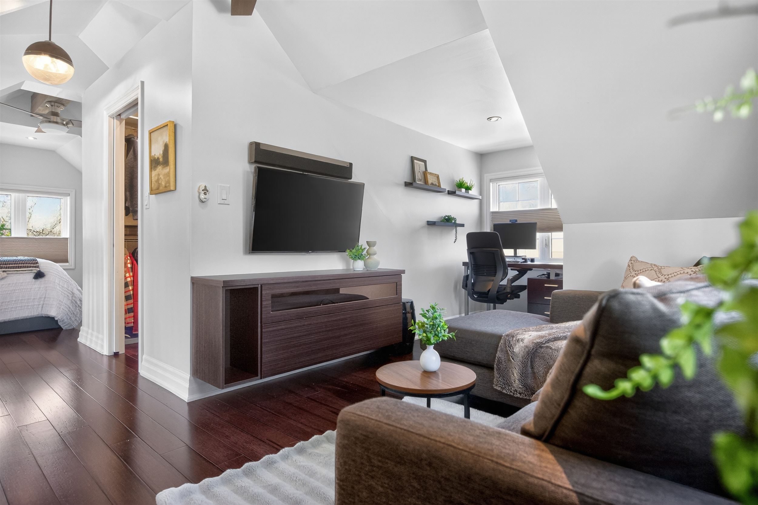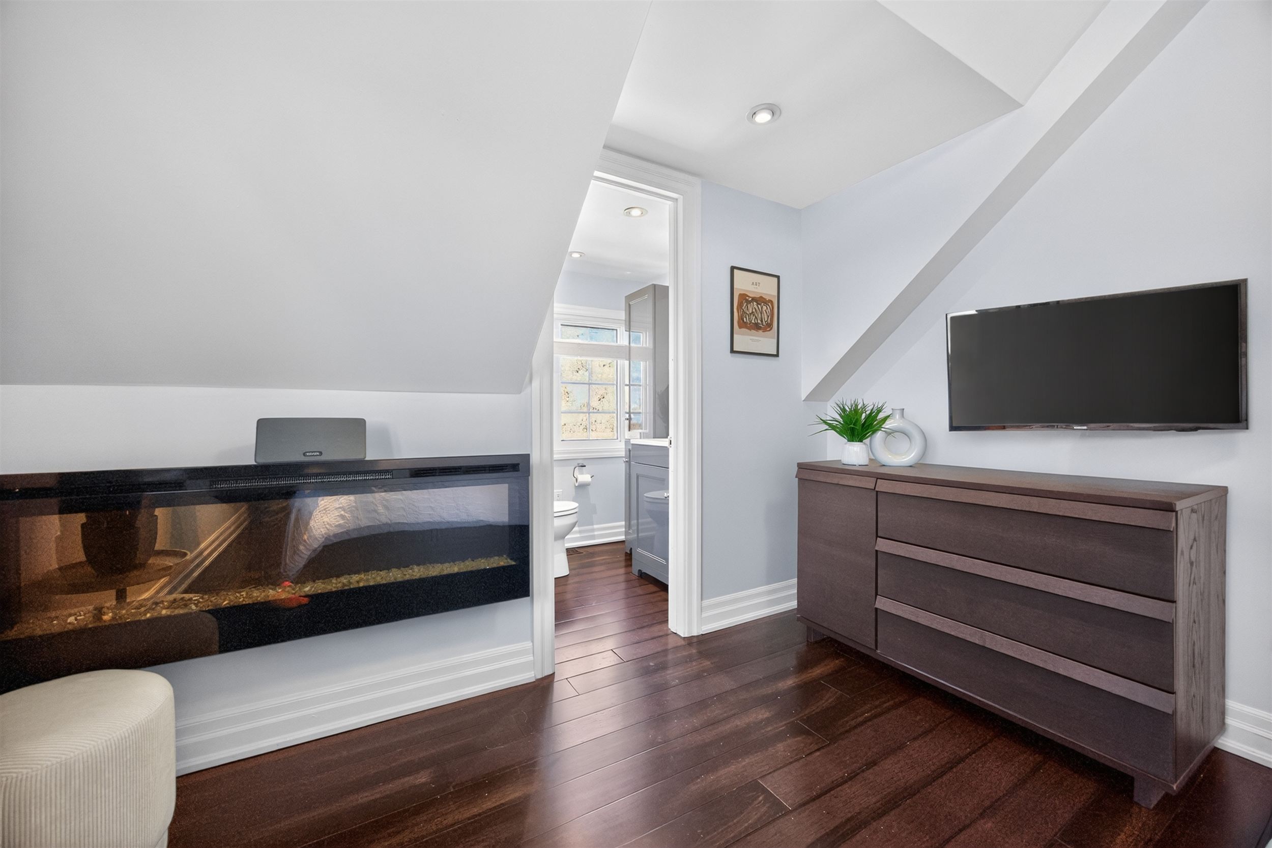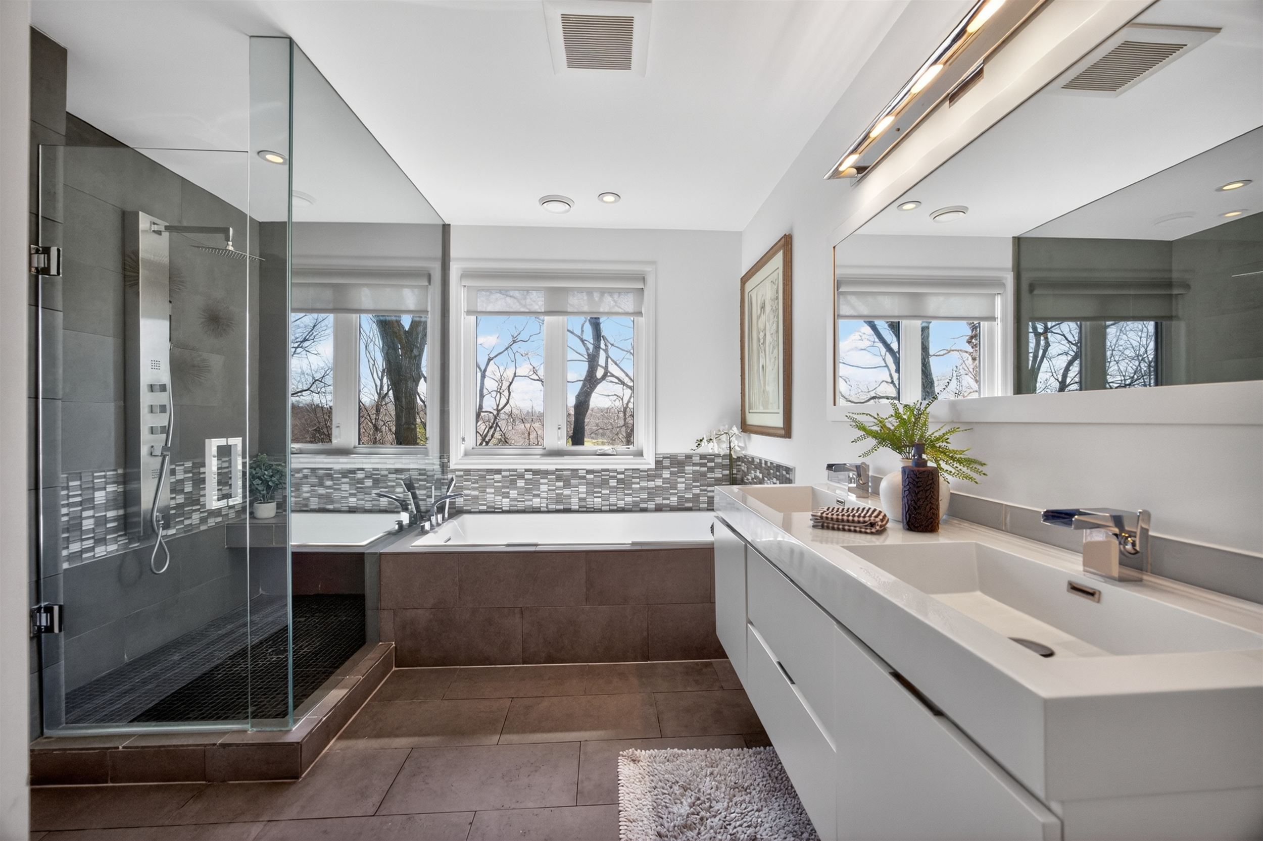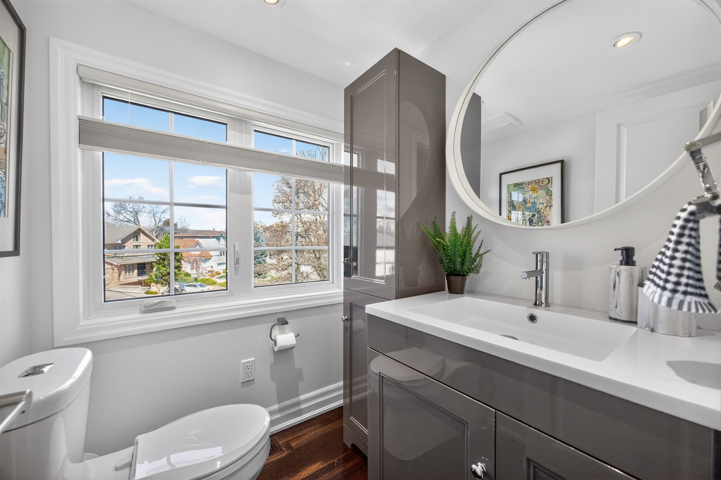 Walk out to a spacious deck overlooking a lush, treed backyard, offering a peaceful Muskoka-like setting in the city. The second-floor spa-inspired bathroom with heated floors provides a luxurious retreat, while bamboo flooring throughout the second and third floors adds warmth and character.