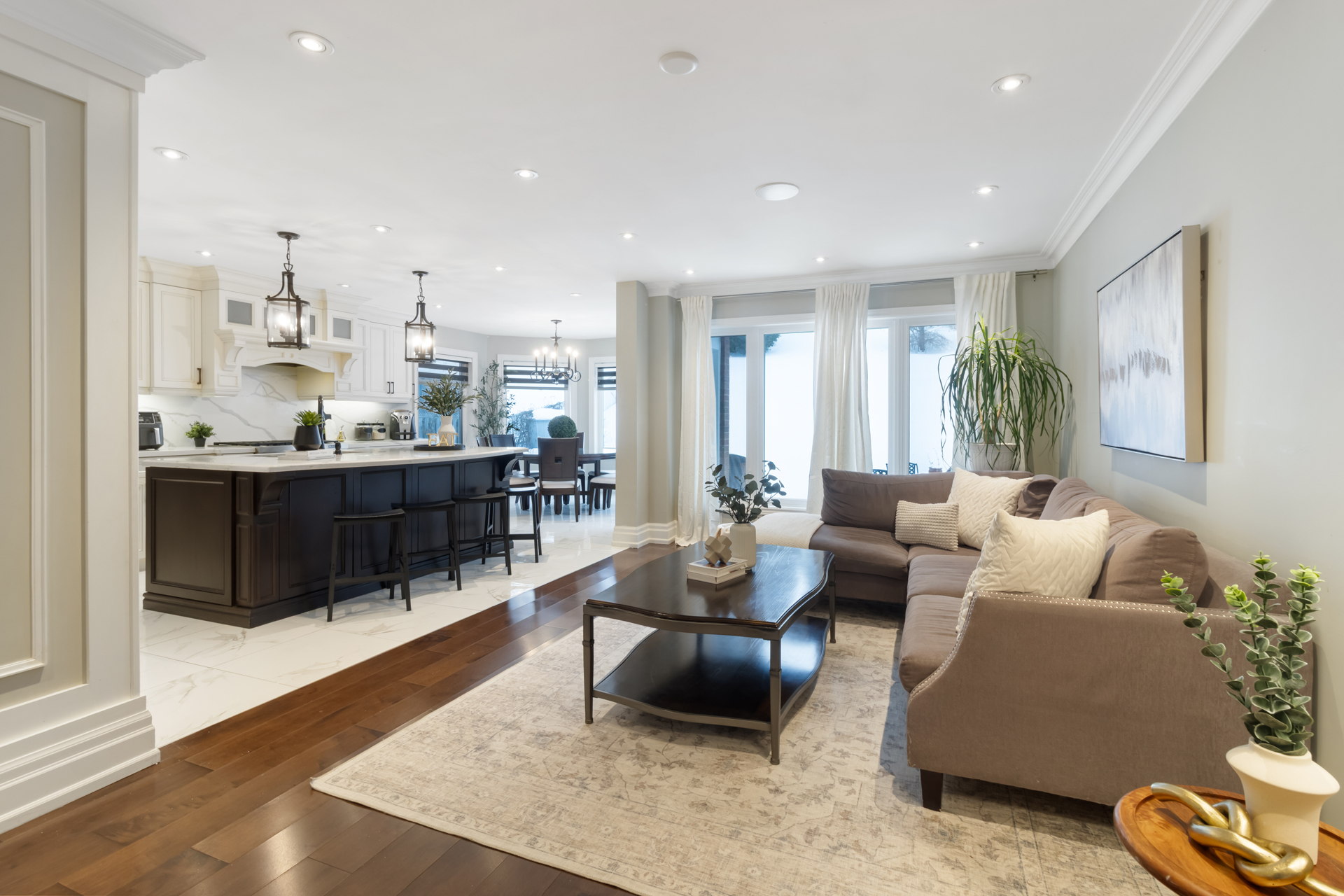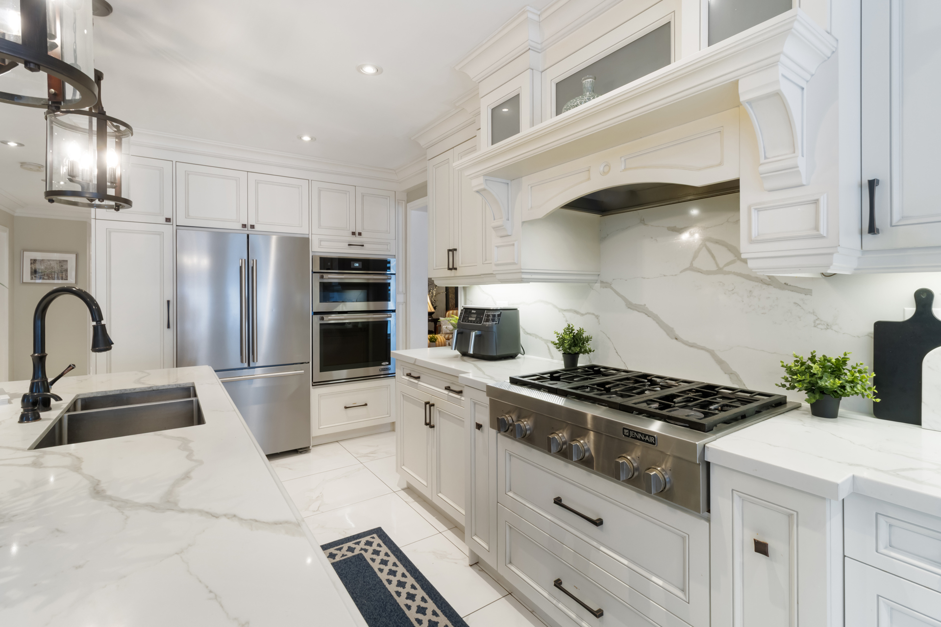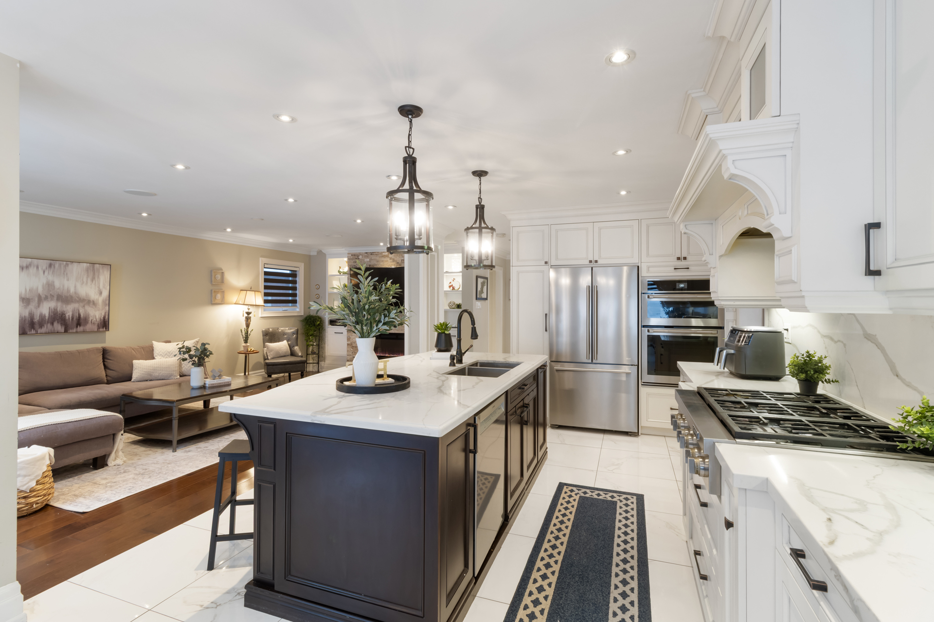 The elegant main floor showcases crown mouldings, pot lights, a spacious family room, main-floor laundry, ad convenient interior access to the garage. The gourmet, family-sized kitchen features gas burners, oversized centre island, upgraded appliances, and a bright breakfast area with a walk-out to a spectacular, private backyard-perfect for entertaining or relaxation.